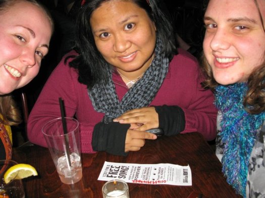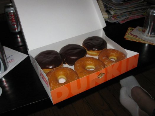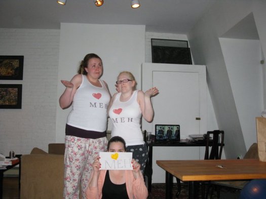 It was a long bus ride home, as we hit rush hour, but we eventually made it back. We spent the evening gorging on pizza, Dunkin’ Donuts (Boston Cream!), Diet Coke, and watching Nancy Grace. We also did a photo shoot in out awesome shirts from Jennifer Eolin’s Cafe Press Store!