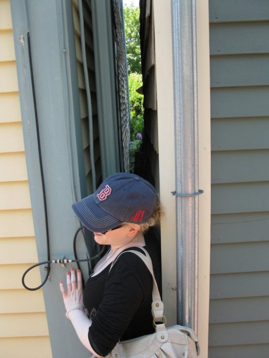 Oh, and Sally also wedged herself between two houses at this stop (Bob is to blame for this, honestly):